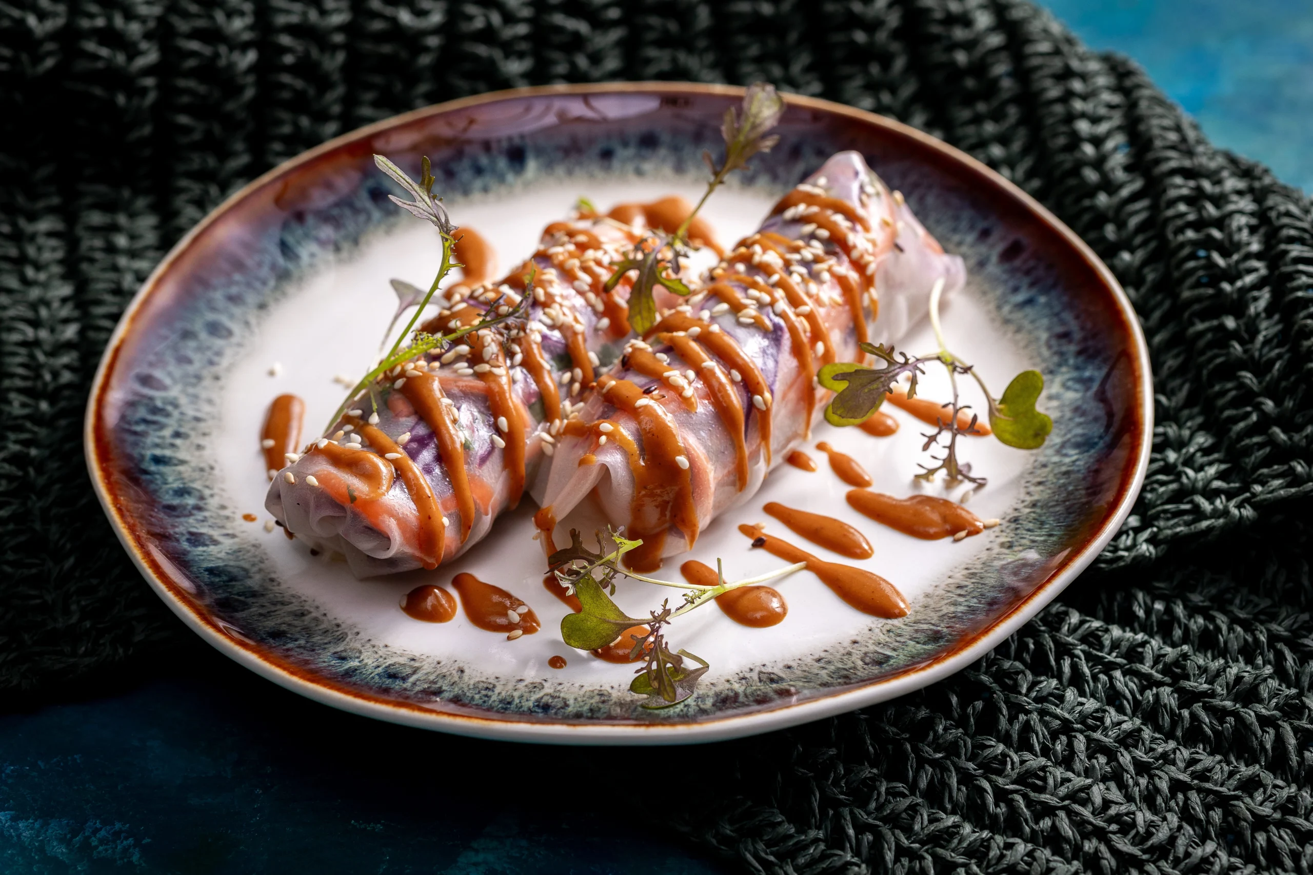 Fűszeres garnéla lilakáposztával és sárgarépával, friss korianderrel és thai chiliszósszal. Könnyed, mégis karakteres indítás.