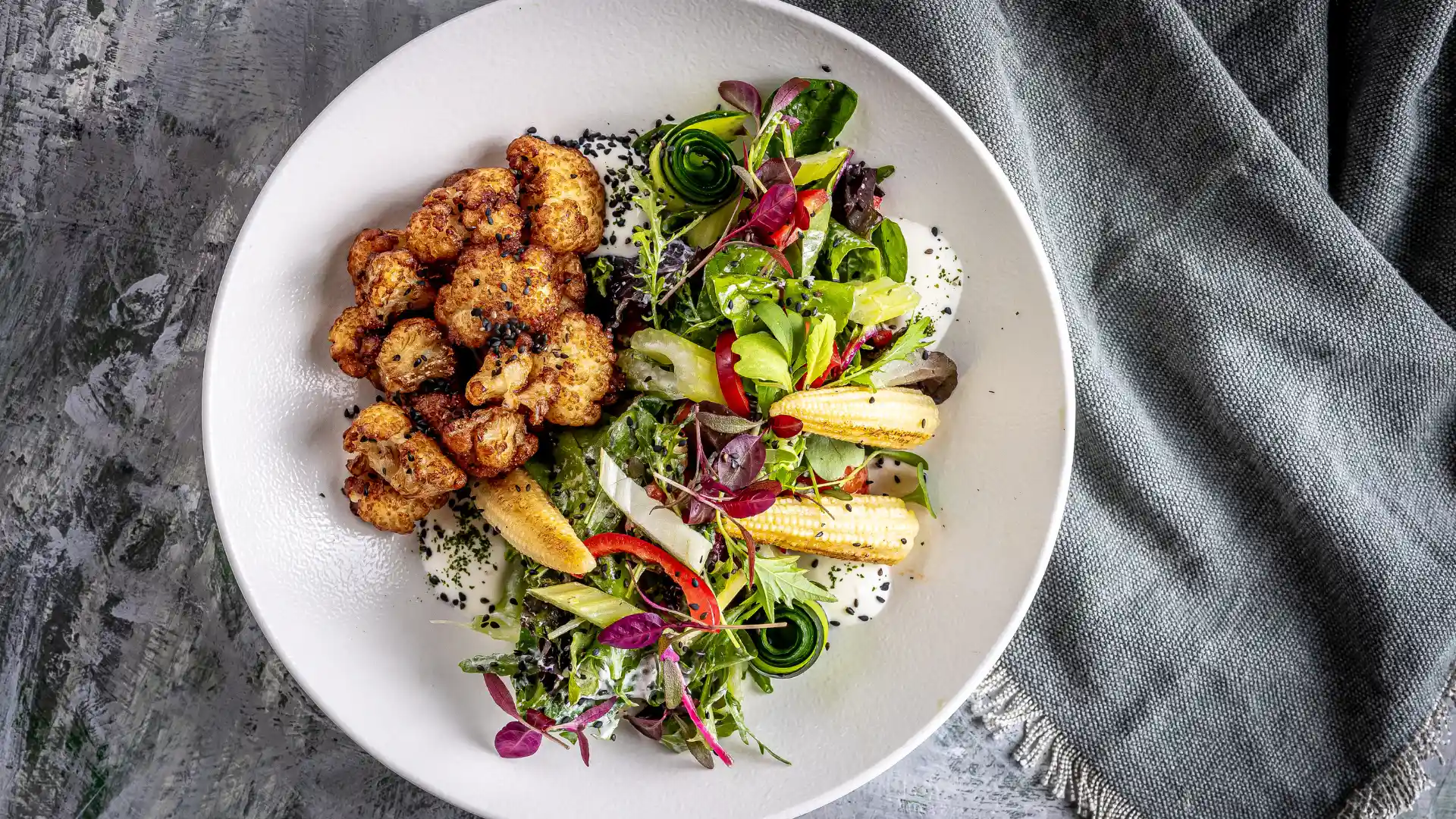 - Tibidabo saláta sült karfiol feltéttel (7,9,11)
